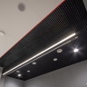 Потолок Грильято - может быть окрашен порошковой краской в любой из 200 оттенков по каталогу RAL, на складе продукция всегда поддерживается в самых популярных оттенках: RAL 9003, 9005, 9006, 9006 матовый, 7024.